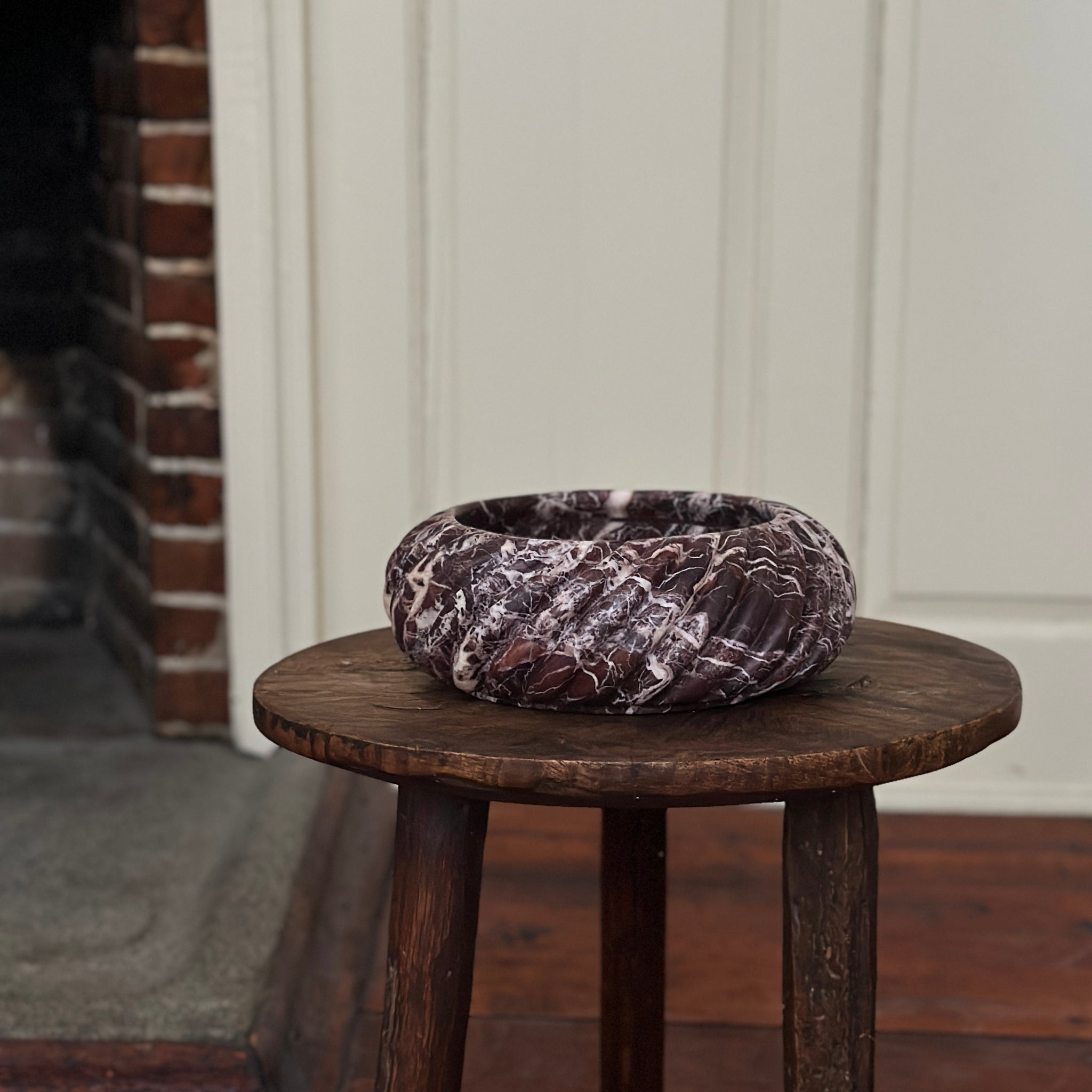 Made from a single block, its ridged edges ripple around a generous basin. At once playful and grounded, it’s sized for fruit at the table, a centerpiece arrangement, or as a stand-alone sculptural object. Every curve catches light differently, giving the piece a sense of movement even at rest.