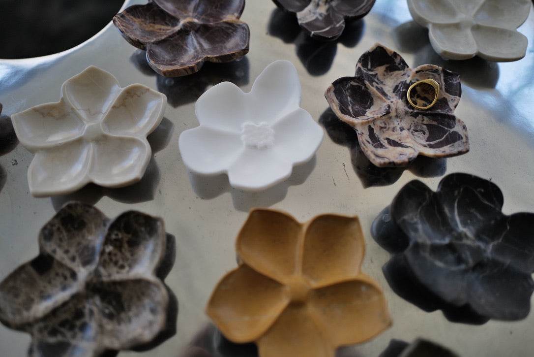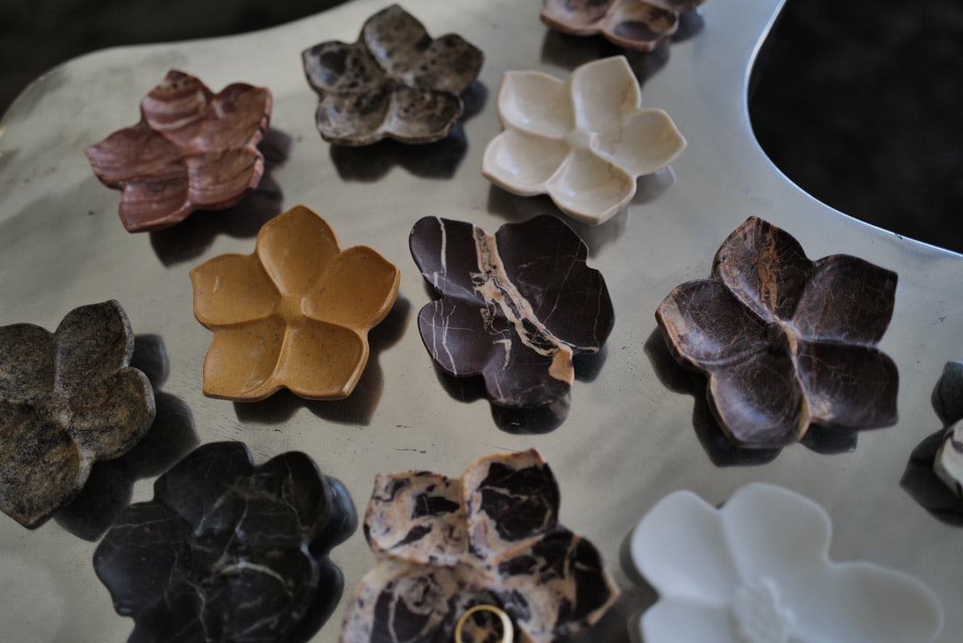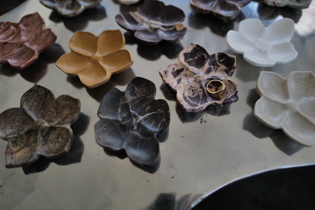 Carved to resemble the dogwood bloom, its four-lobed silhouette reads like a pressed petal shape, with a shallow center that holds just enough. It’s made for the moments that repeat: soy sauce at the table, a ring pulled off at the sink, earrings set down on the vanity before bed.